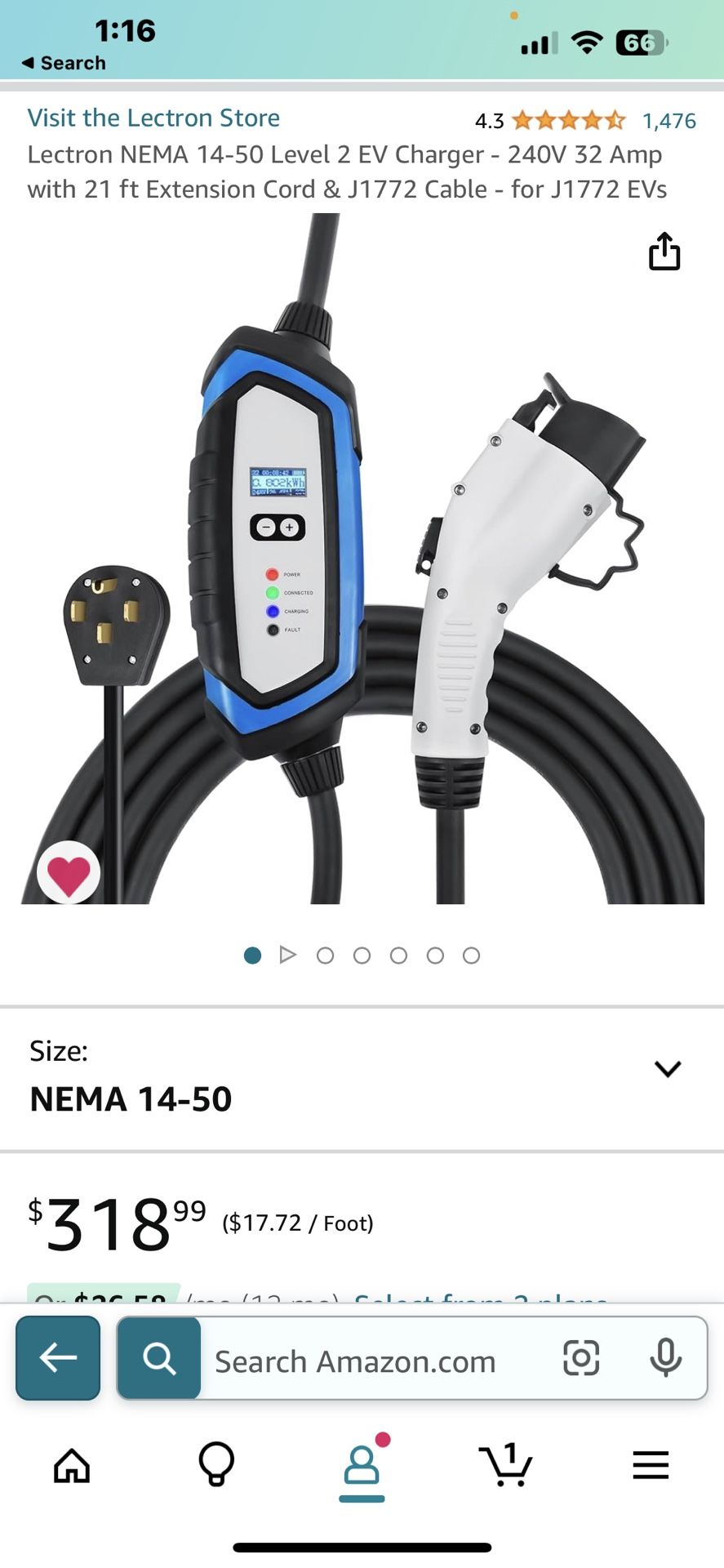 Used for 1 month DetailsDetails Color: Black Brand: Lectron Connector Gender: Male-to-Female Voltage: 240 Volts Input Current: 32 Amps