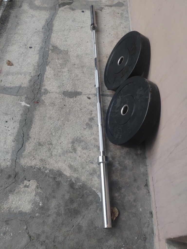 7 Foot Barbell With 2 - 45 Lb Bumper Plates