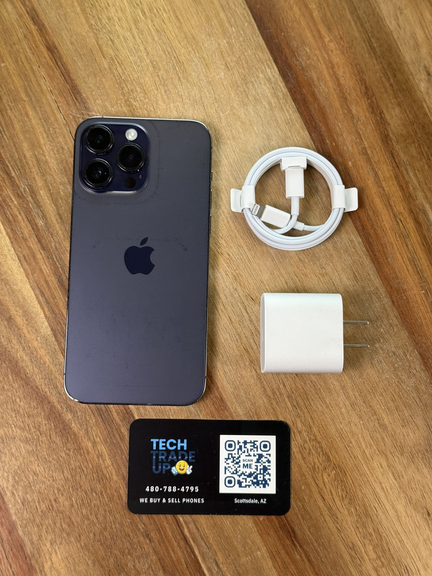 Cricket 15 day warranty with TechTradeUp 7/10 condition 85% battery health Comes with charger No issues at all (Purple) 256Gb Finance options available Same day delivery services available ($20-$30) depending on location Military discount ($10) **Cash for best price** Zelle, Cash-app, Venmo, Apple Pay Card payment will include taxes through SQUARE (ID required with matching card) Cases and screen protectors bundle available for $25 Apple fast charging bricks available for $10