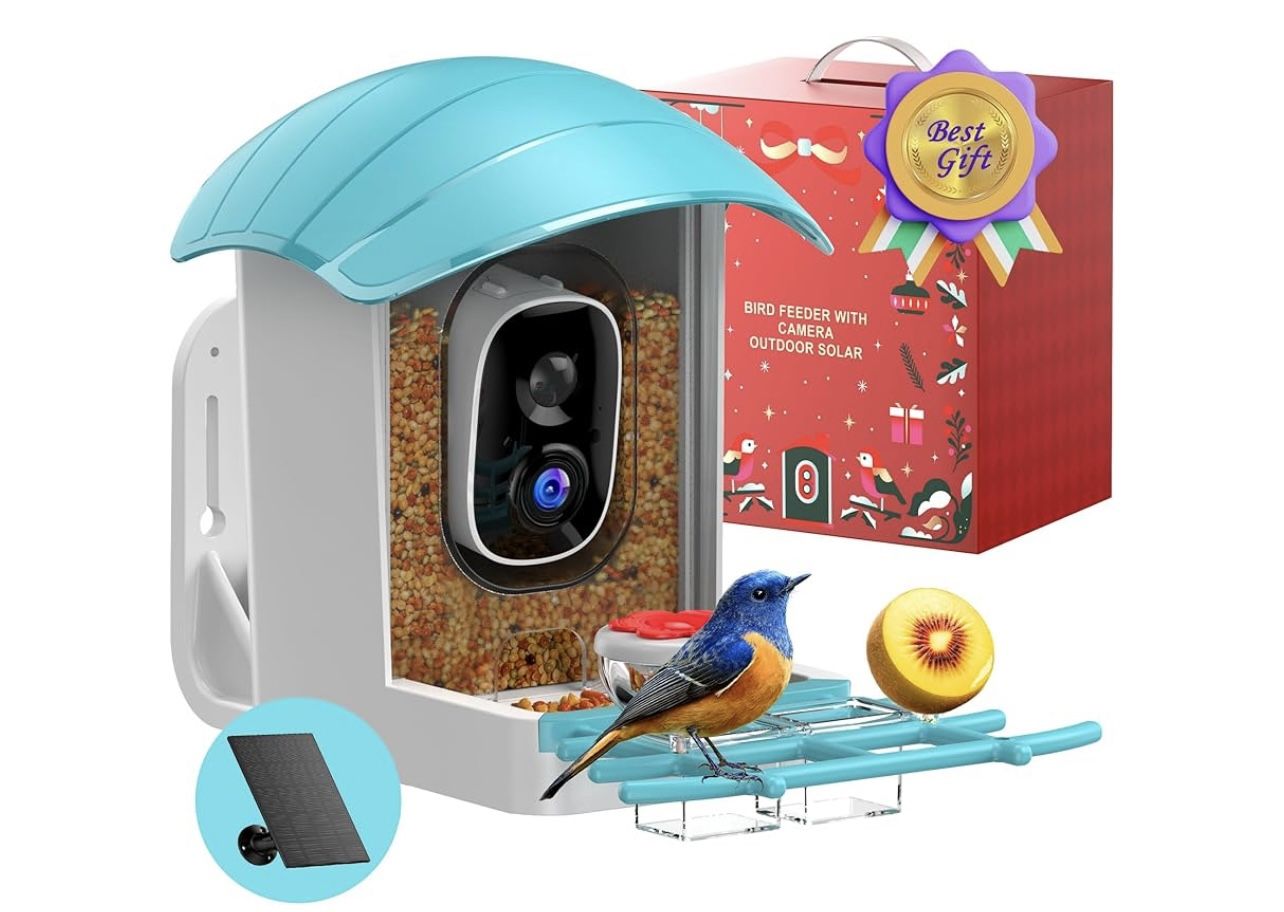 New Bird Feeder with Camera Solar Powered: Smart Bird Feeders for Outdoors Garden with AI Identify Auto Capture 2K HD Bird House with Camera Outside WiFi Live View Birdfeeder Cam Gift for Birds Lover