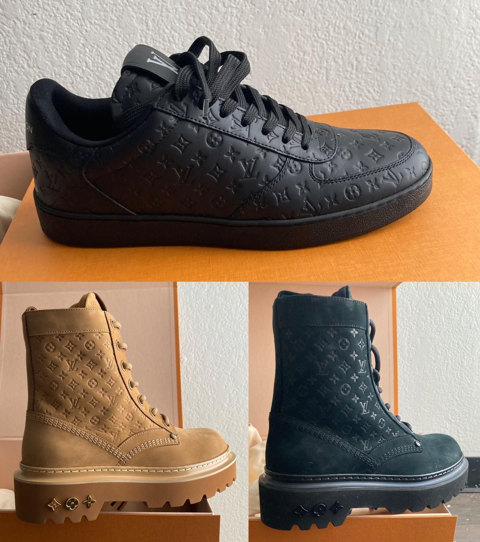 Selling a 3-pair Louis Vuitton footwear set: • LV Ranger Boot – Beige (sold out online) 👢 • LV Ranger Boot – Black 👢 • Rivoli Sneaker – Black Monogram 👟 Size: LV 5.5 (US 6.5) — fits 9.7" foot length / 24.8 cm All brand new, boxed, unworn. Retail after tax: $4,090+ 💰 Asking $3,800 for the full set 📍 Local pickup only 💵 Cash only ✅ Authenticity guaranteed
