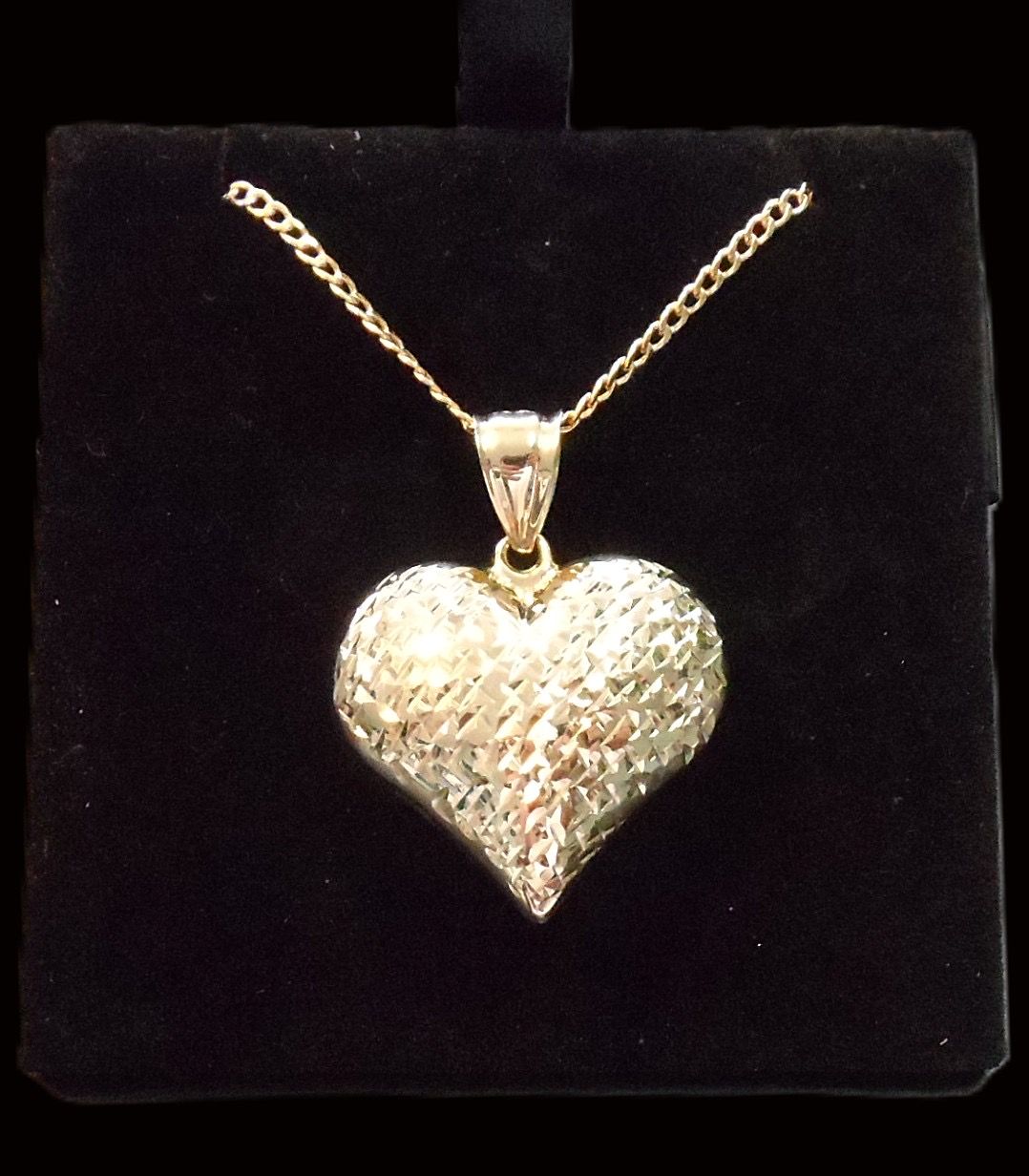 NEW 10K GOLD LADIES LARGE HEART PENDANT WITH CHAIN