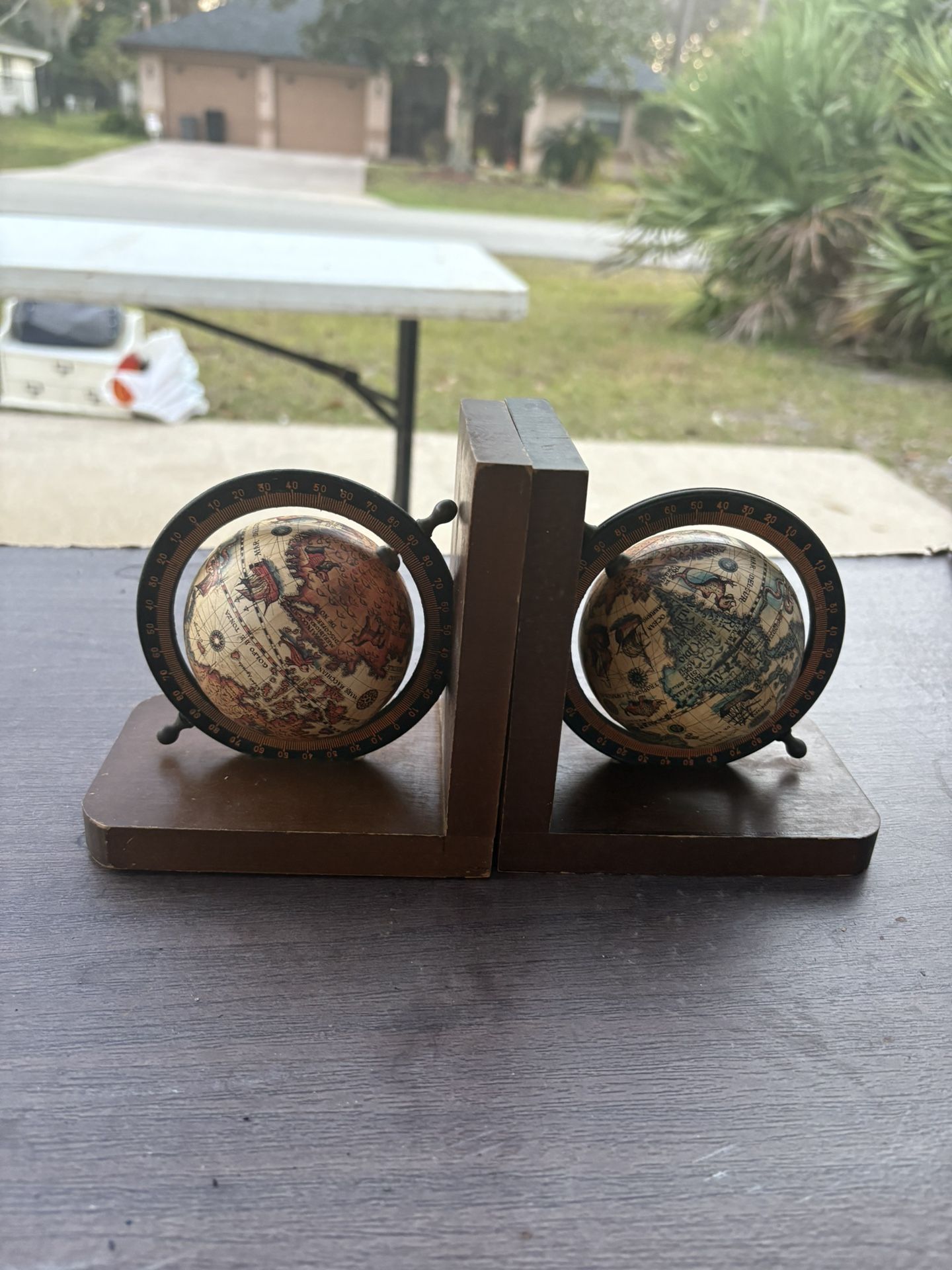 Wooden style globe book ends