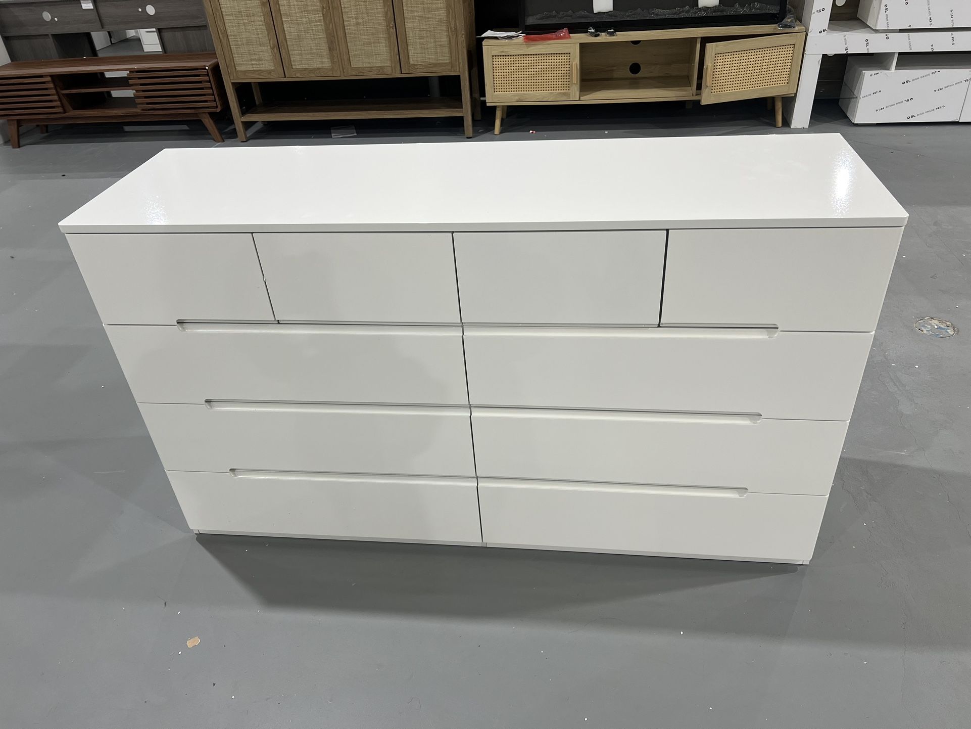 M-New 10 Drawer White Dresser for Bedroom, 55" Long Dresser Chest of Drawers, Large High Gloss Modern Storage Cabinet with Big Drawers Handle Free, Li