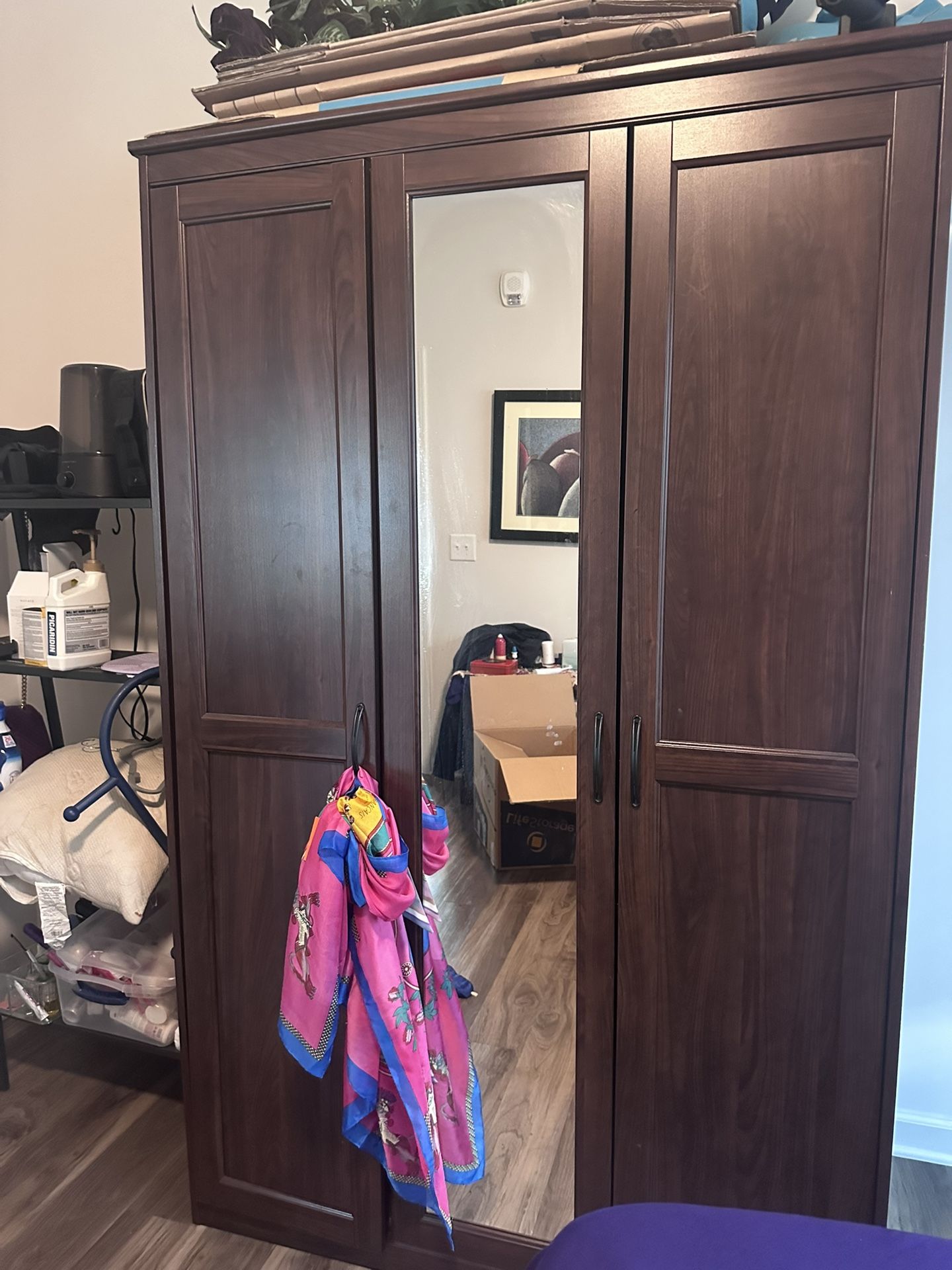 Local pickup Greenville Roper mtn rd exit Wardrobe, brown, Measurements : 47 1/8x23 5/8x75 1/4 “ Wood