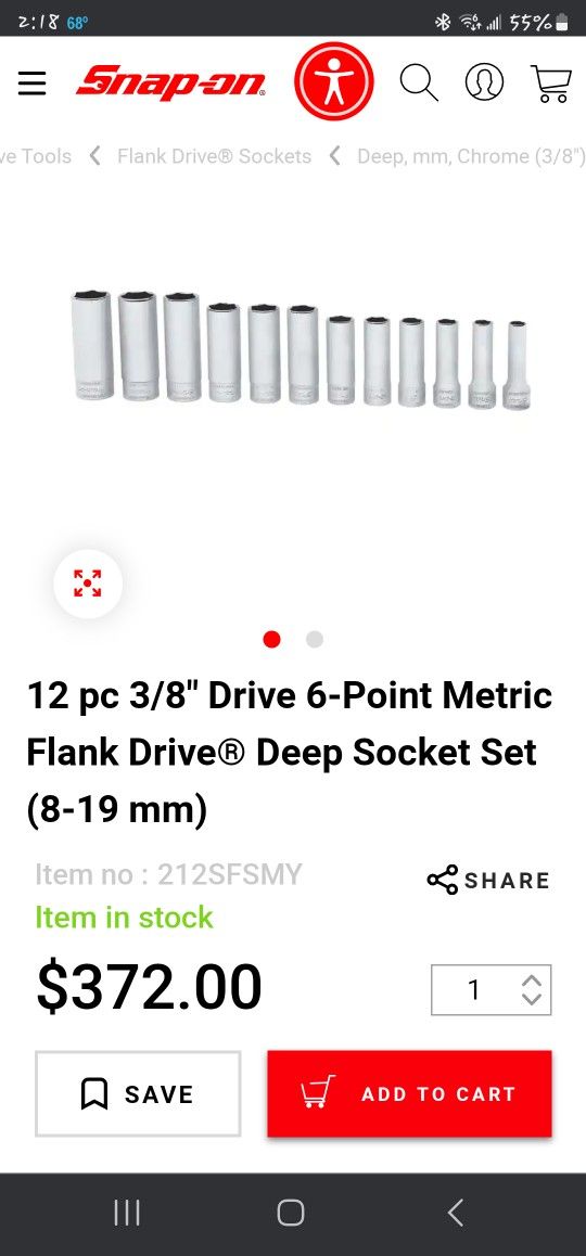Brand new 3/8 snap on socket set