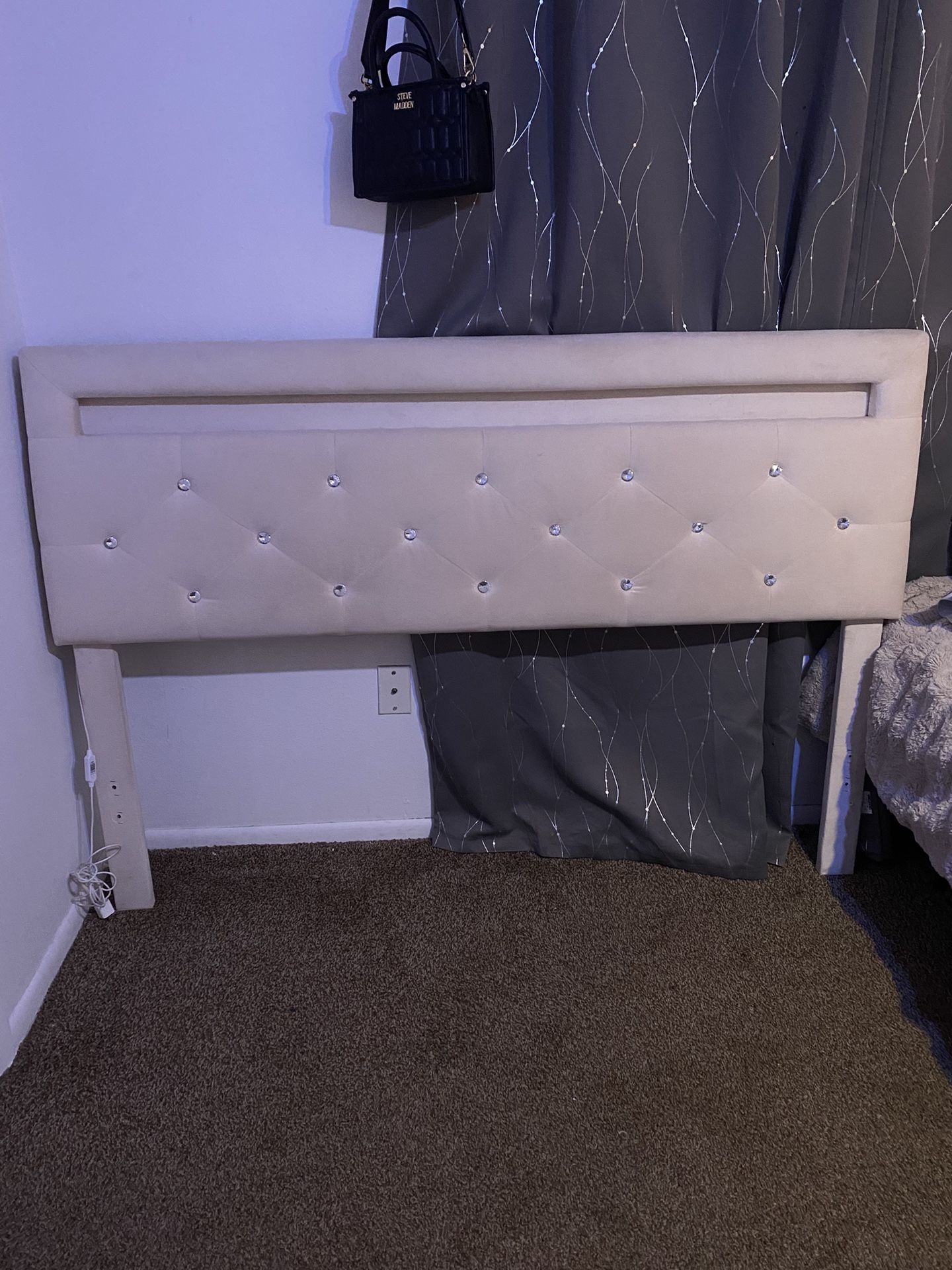 this head board can be used as a queen/king comes with LED lights w all colors as red, blue, white, light blue, purple, green, yellow! taking $25!