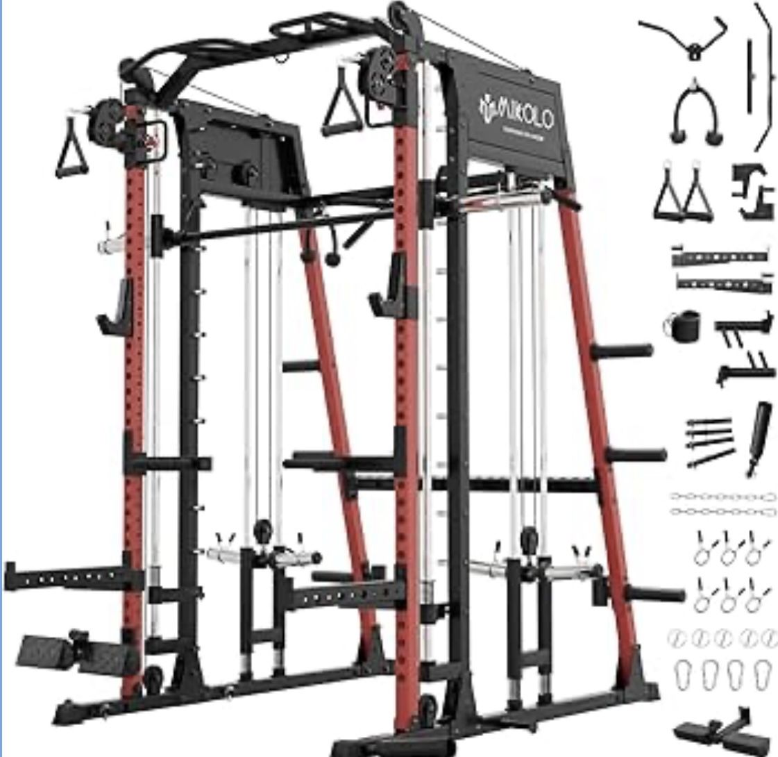 M9 2.0 Smith Machine, All-in-One Home Gym Power Cage with LAT Pulldown & Cable Crossover, Squat Rack for Full Body Workouts,Red