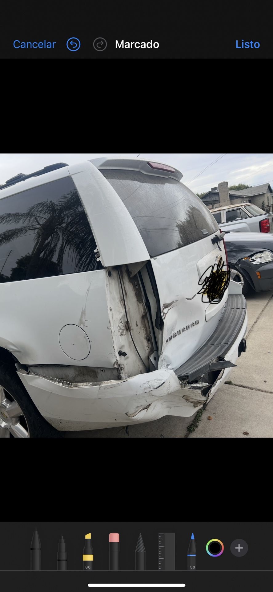 Busco la defensa trasera de una Chevrolet Suburban, Blanca, 20007LT Z