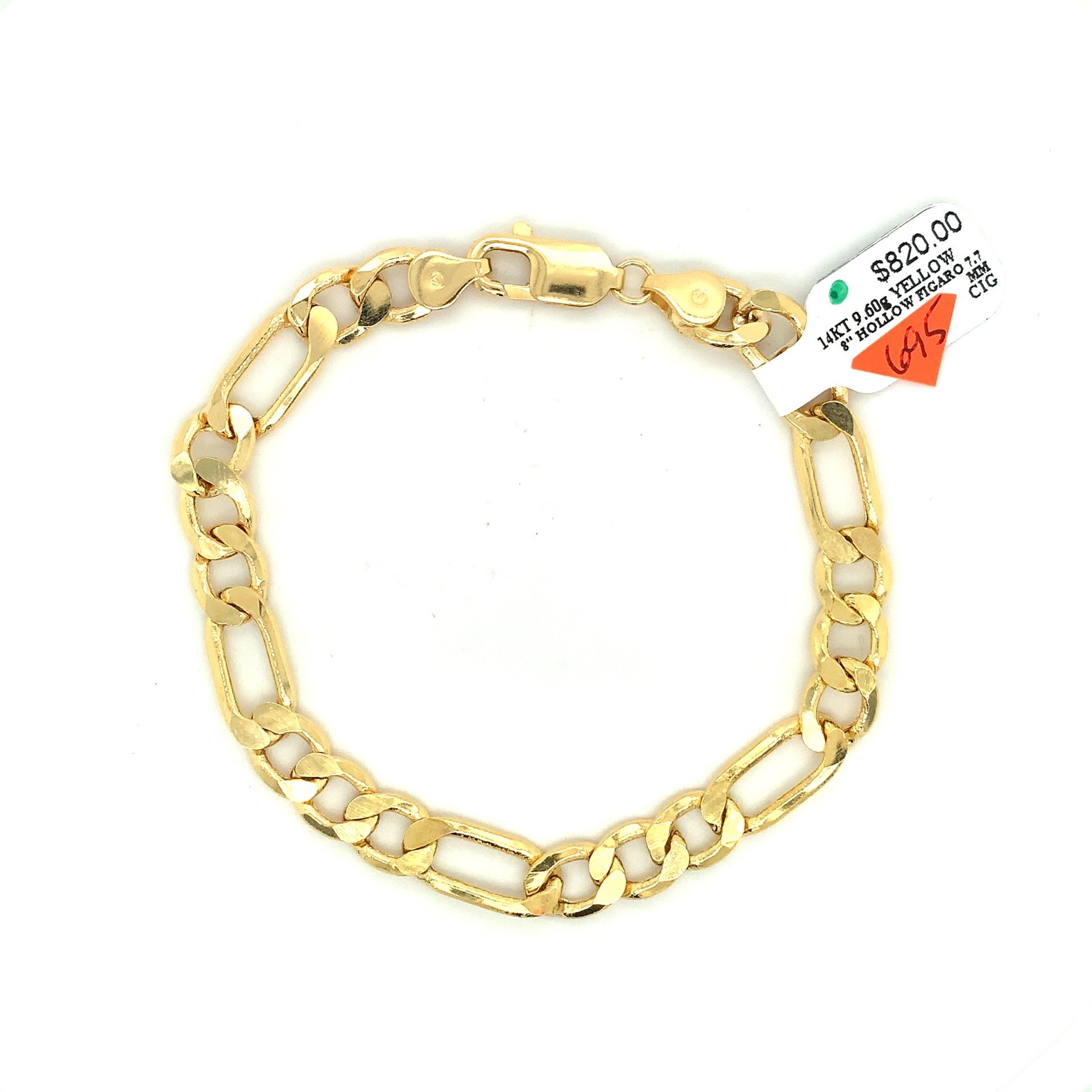 14kt Gold Hollow Figaro 7.7mm 9.60grams 8” 155932 2
