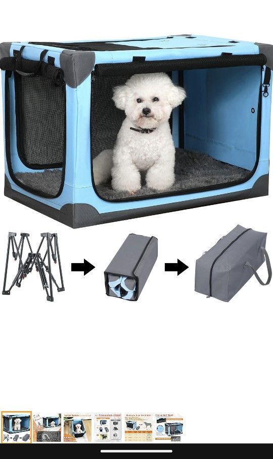 Qpinkpet Soft Foldable Dog Crate Kennel for Car, 4 Door Soft Sided Dog Crate for Medium Large Dogs with Strong Steel Frame, Indoor Outdoor XL SIZE NEW IN BOX ORIGINAL PRICE $90