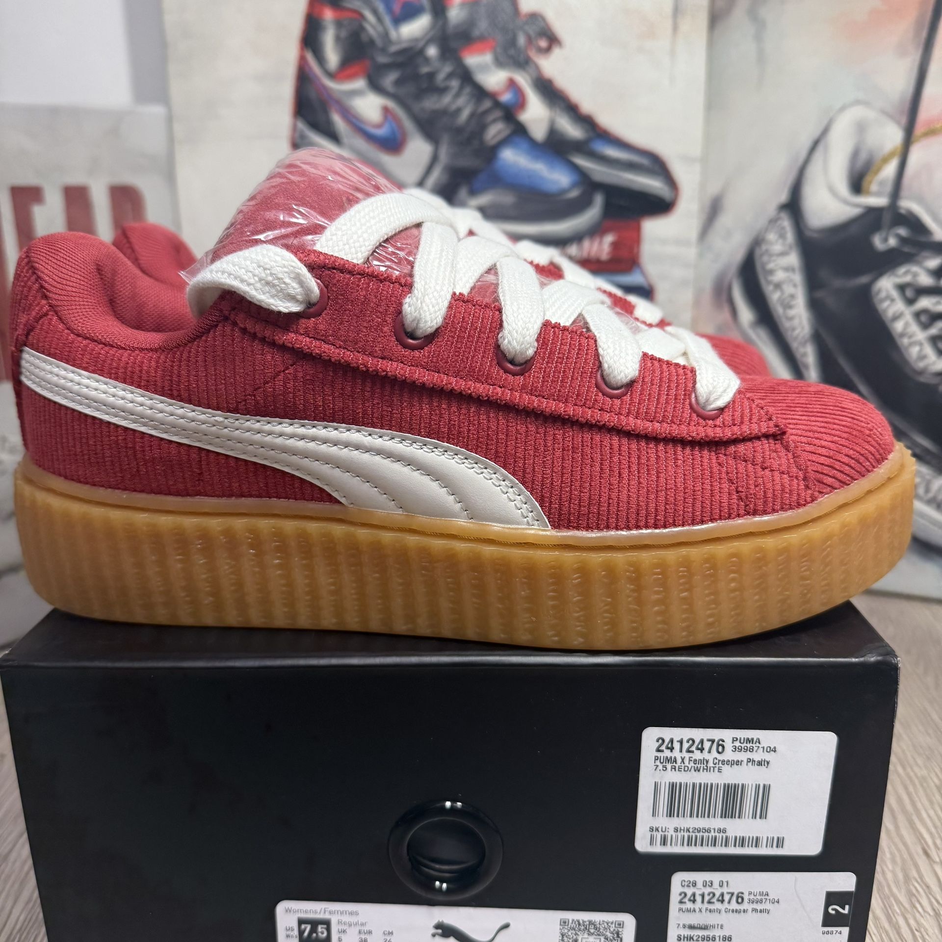 New Puma X Rihanna Fenty Creeper Phatty Corduroy Club Red 399871 04 ‘ In Session Pack’ Red Gum Womens Sizes 6 US, 6.5 US, 7 US, 7.5 US, 8 US, 9 US