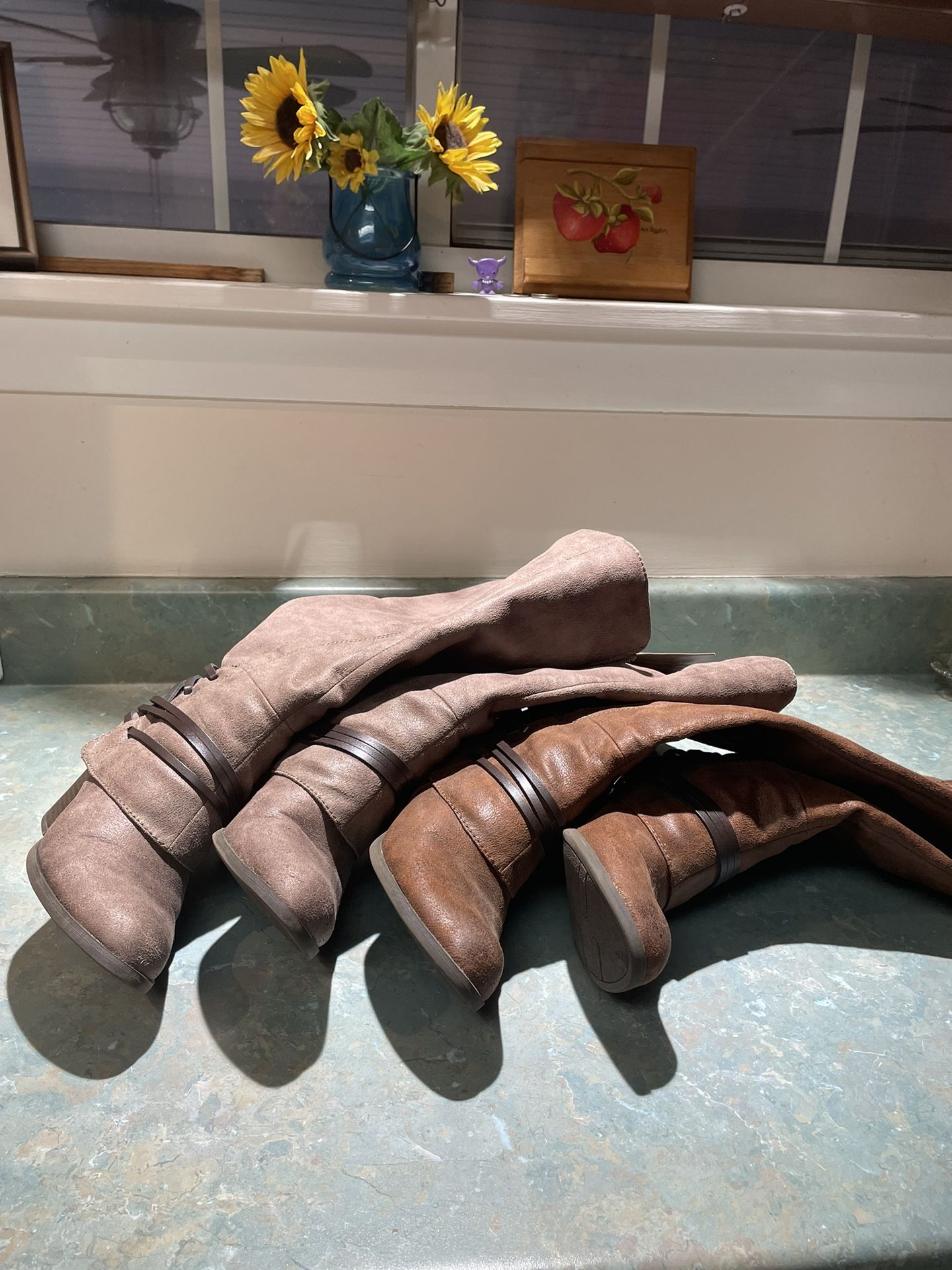 Size 8 - Wide Calf Boots - Brand New - 2 Pair Dark brown and light brown 3” heel- very comfy - Fergalicious by Fergie $15 / pair CHESWICK pickup