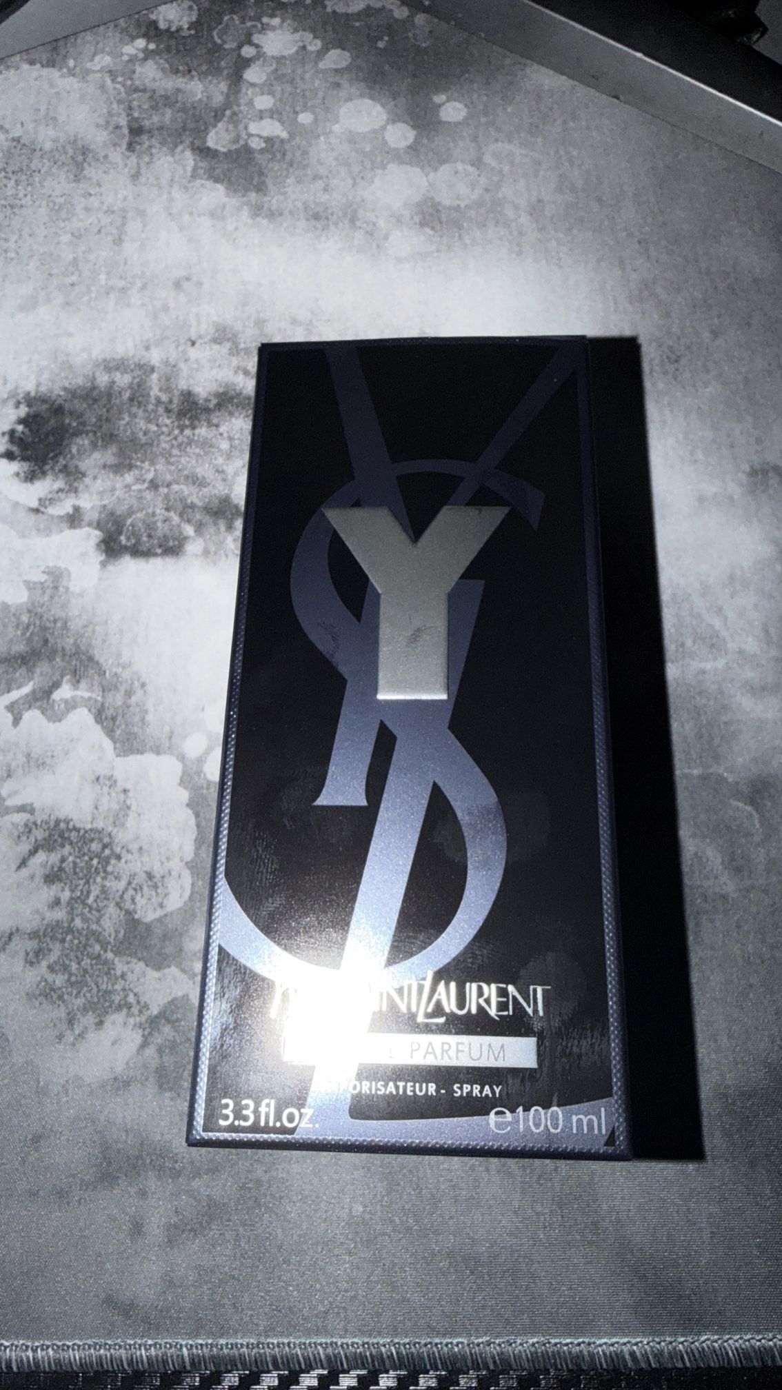 This is a 3.3oz Yves Saint Laurent Eau de Parfum set with a dark, glossy bottle and matching black packaging. It has a bold, sleek look that gives off a modern, masculine luxury vibe.