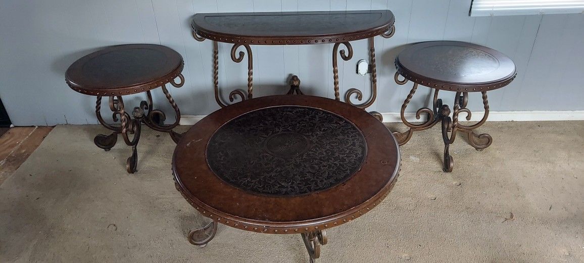 Set of 4 Antique Brown Living Room Tables – Beautiful matching set featuring two side tables, one center coffee table, and one console table. These antique brown tables showcase classic craftsmanship with rich wood tones and elegant detailing that add warmth and character to any living space. Solid, sturdy, and well-made, they offer both style and function, whether used together as a set or individually. Perfect for a traditional, vintage, or rustic home. Gently used and well cared for. Message me for pricing, dimensions, or to schedule a pickup. I only take cash or cash app in person when pick up.