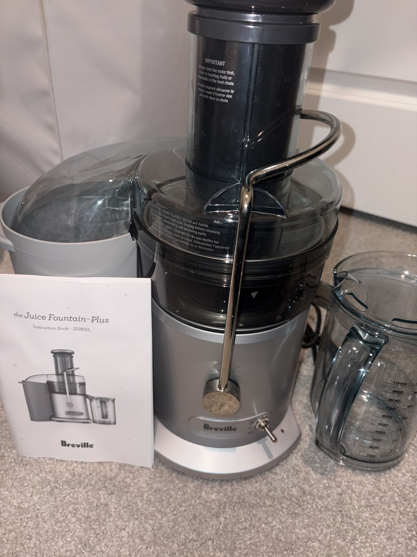 Breville the juice fountain plus. Comes with all parts and the manual. Must be able to pick up in Marvin, NC.