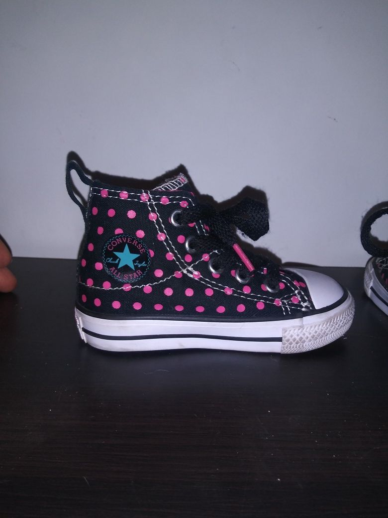 Worn only 2 times my babygirl out grew them very cute size 5 good fit toddlers need a wipe down and they are good as new
