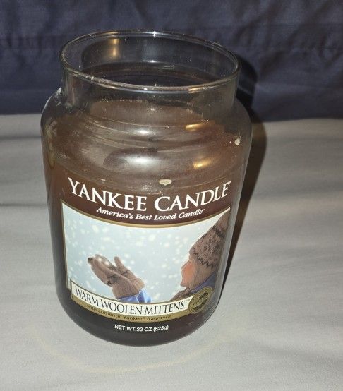 Yankee candle large jar 22 oz . WARM WOOLEN MITTENS. PICK UP IN BLOOMINGDALE