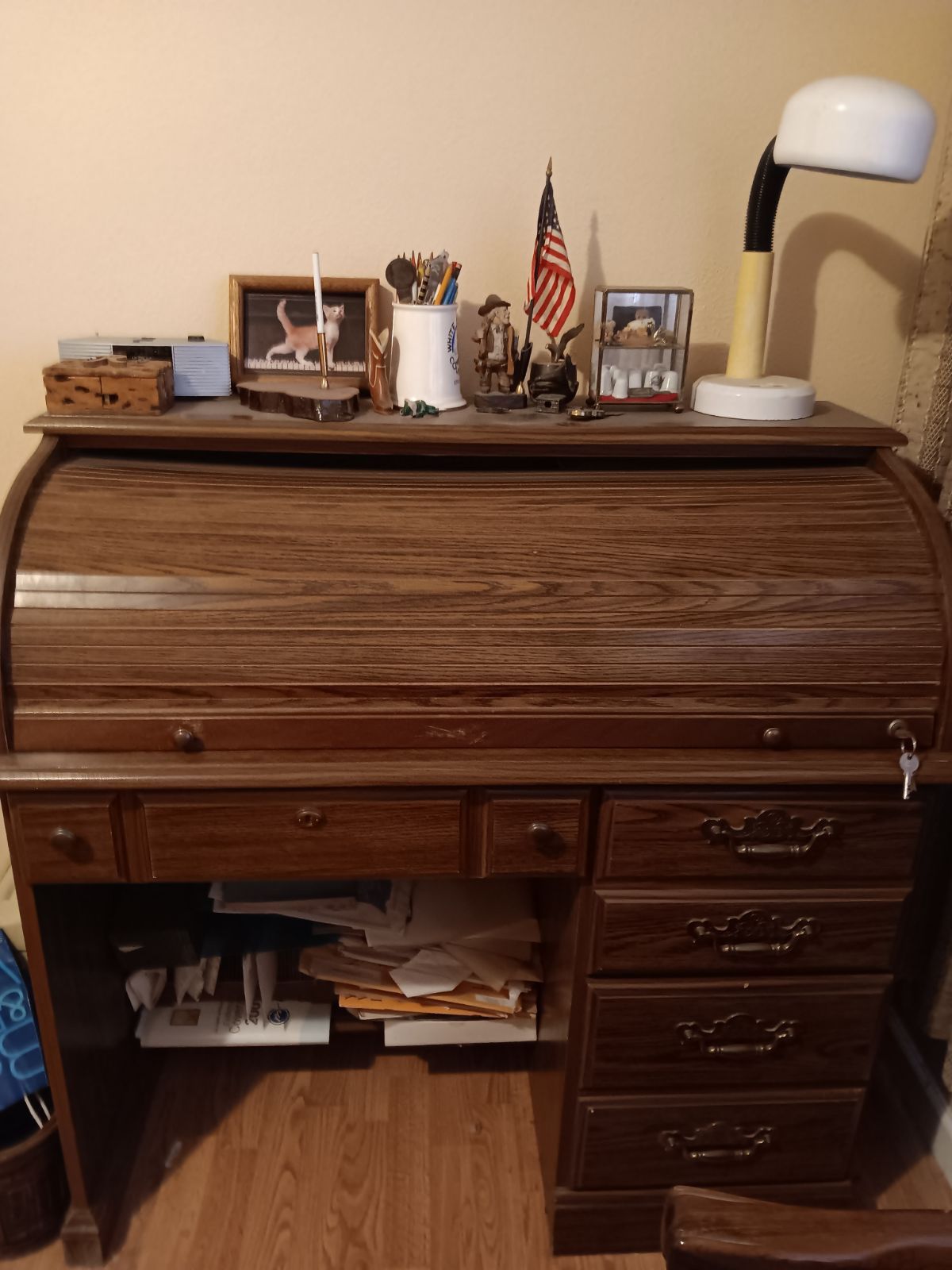 Roll top desk with lock