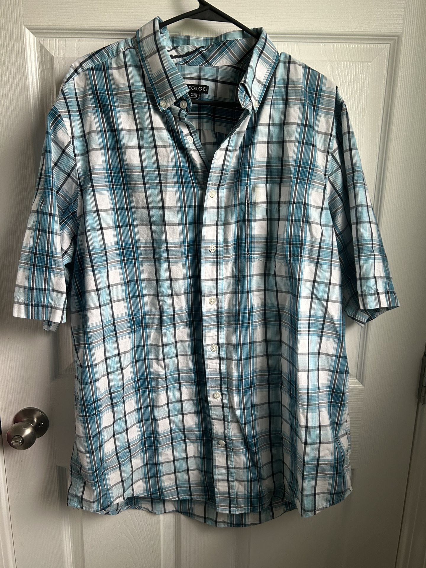 George Men's Blue Plaid Short Sleeve button-down Shirt Size XL