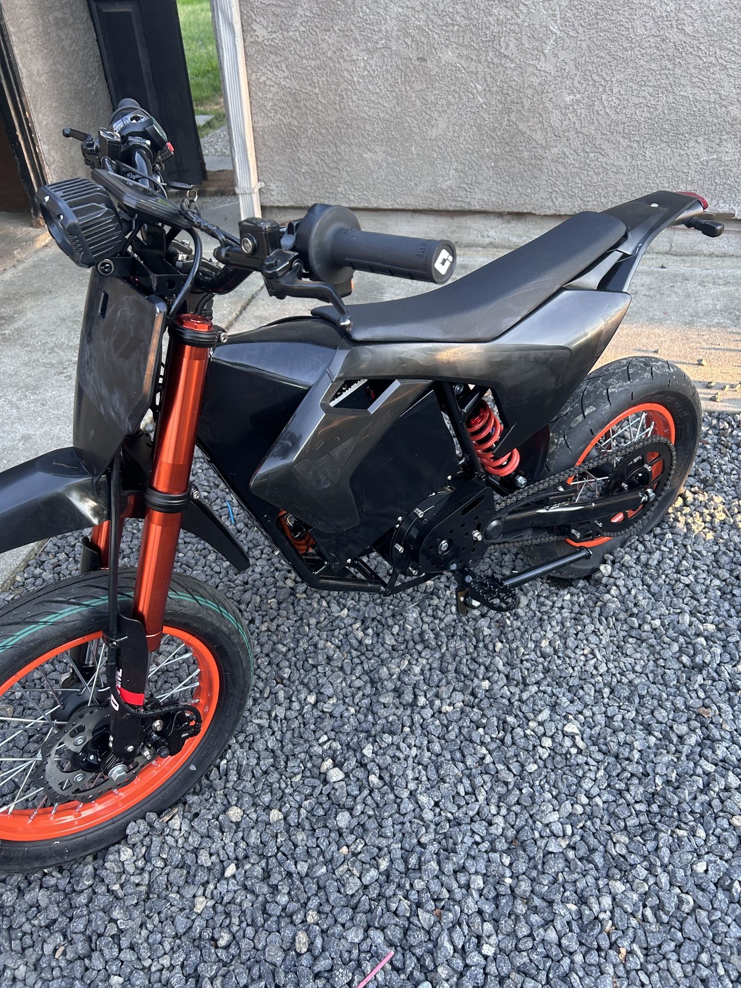 Goes 55+ super motos 60 miles in range in mode one 40 in 2 and 30 in 3 new grips and throttle decals gone
