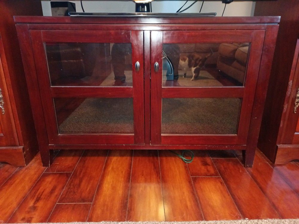 Cherrywood TV stand in very good condition measurements are 42 in Long 29 inches high 15 in deep any questions feel free to ask thank you