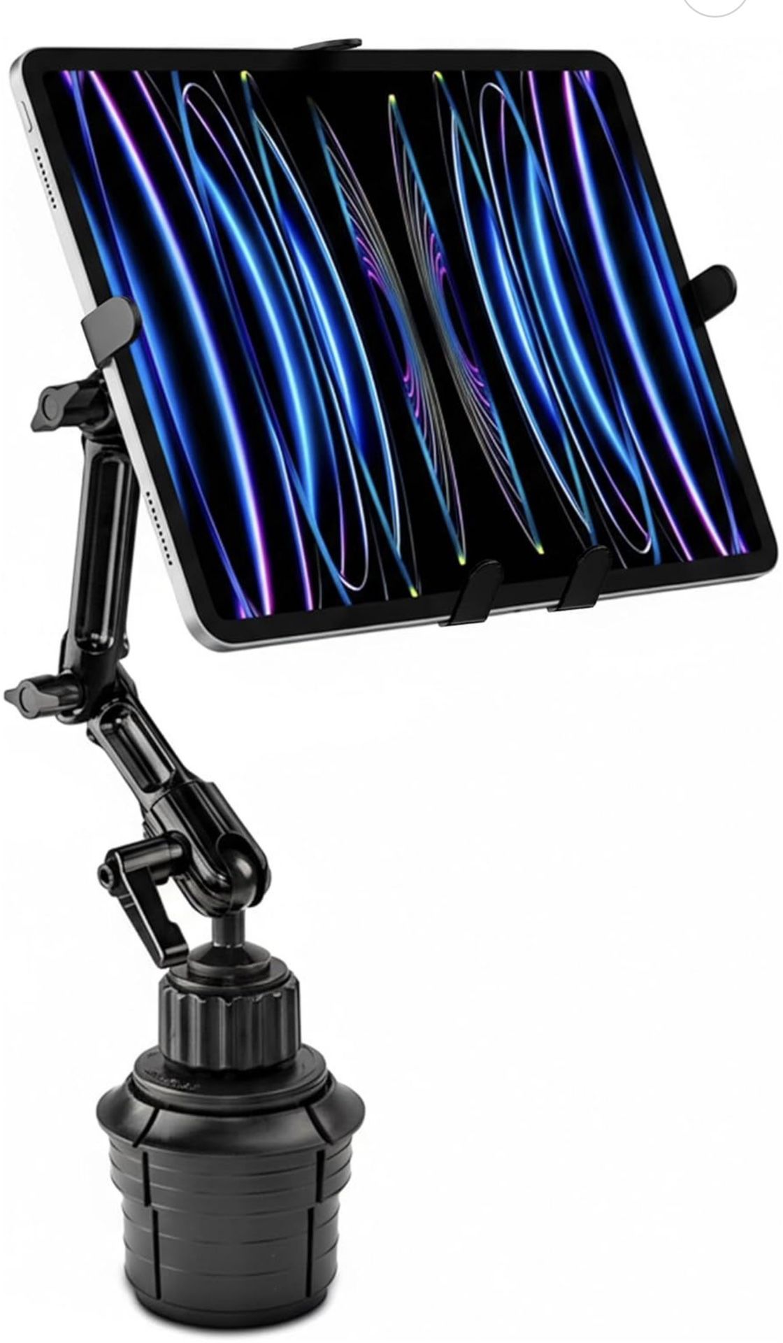 Mount-It! Premium Cup Holder Tablet Mount Fits Vehicle Cupholders 2.75"3.5" In Diameter, Adjustable Tray for 7"11" Tablets, Heavy-Duty Aluminum Arm, Full Motion Swivel & Secure Lock Cars Trucks SUVs
