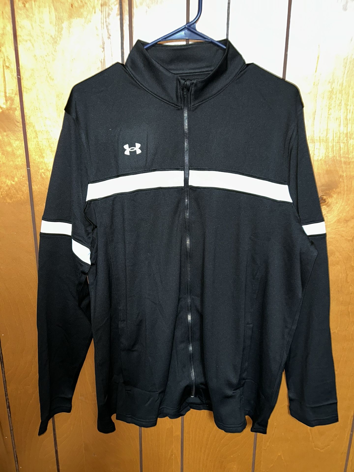 Brand new Under Armour women’s performance jacket made from 100% polyester with sweat-wicking, quick-drying durable knit fabric, a loose, comfortable fit, open hand pockets, and encased elastic cuffs, designed for warmth and unrestricted movement during sports or casual wear. Asking for $40, cash only. Will deliver to residence for extra fee or meet half way in public.
