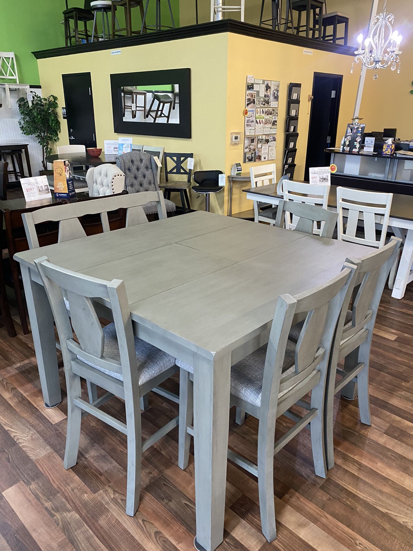 Includes butterfly leaf table, and four chairs & the bench. 36” x 36” - 54” x 36”H