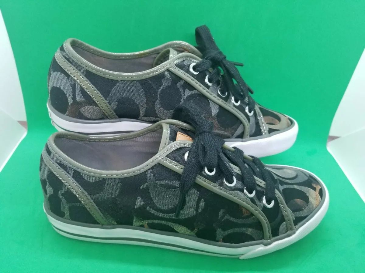 Coach DEE Black And Grey C Monogram Fabric Sneakers