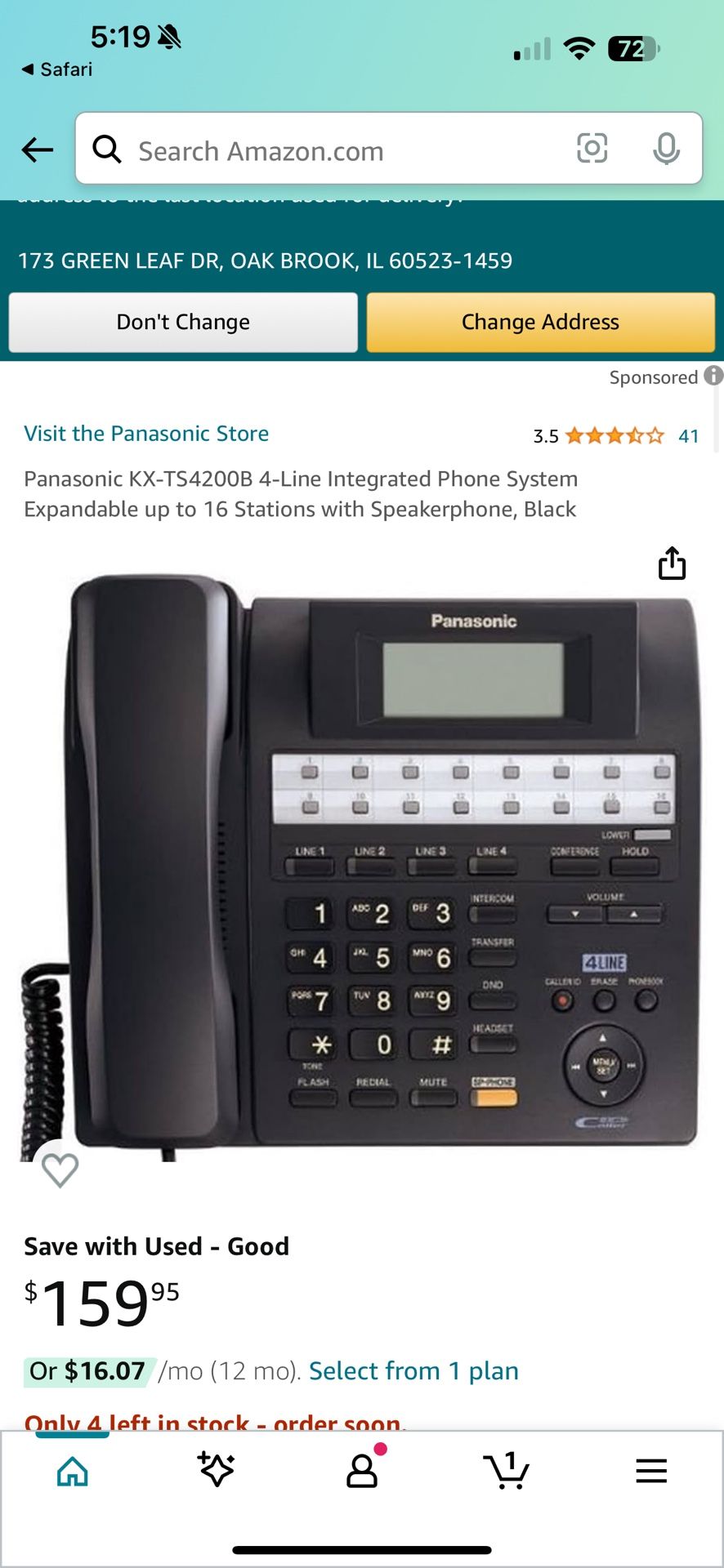 Panasonic KX-TS4200B 4-Line Integrated Phone System