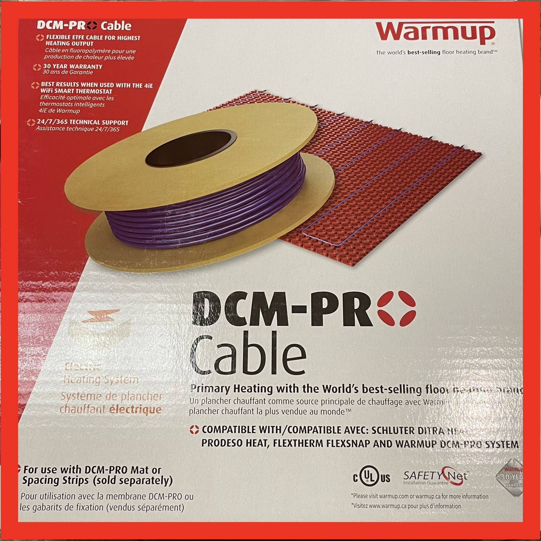 Warmup DCM-PRO Uncoupled Floor Heating System - 120 VAC The Warmup DCM-PRO Cable is a custom designed cable compatible with all uncoupling membranes. It can be installed at 2, 3 or 4 pegs. The cable itself allows primary heating thanks to the twin-core ETFE cable, for highest output. It is guaranteed 30-years. Even better results when used with Warmup 4iE® Smart Thermostat. The DCM-PRO Heating Cable is durable and flexible. It’s ETFE inner jacket allows for high heat output while it’s PVC outer sleeve protects for a smooth installation. The DCM-PRO Heating cable is suitable for use with both Membrane options. The DCM-PRO Membrane’s innovative uncoupling design results in significant protection for tiled flooring by creating a new layer between the subfloor and the floor finish. The Membrane is available in two options, fleece-backed or peel-and-stick, offering great versatility for your installation preference. Both membranes can be used with the DCM-PRO Heating Cable for efficient underfloor heating. CABLE FEATURES: • Operating voltage - 120V • Thickness - 3/16 inch • Output - Approx. 4W/lin foot (varies with in