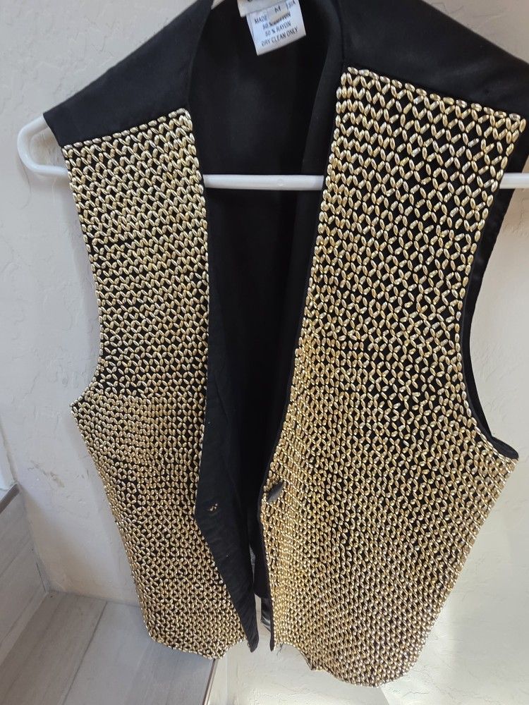 Mens Size Medium Gold Beaded Vest