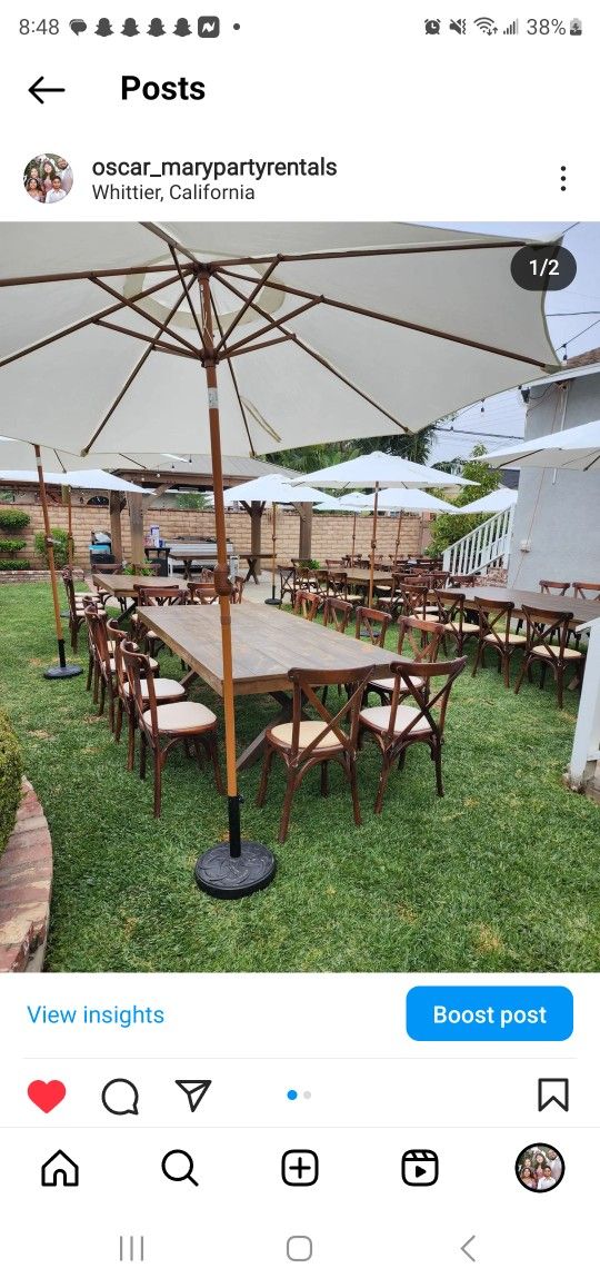 Farm tables Crossback chairs Umbrellas R E N T A L Only