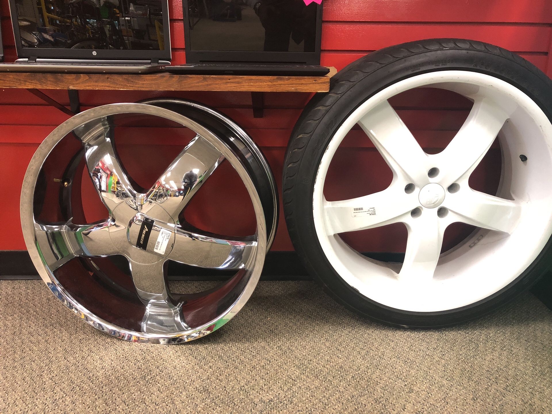 Full sets for both styles....no tires for the chrome set...tires come with other.