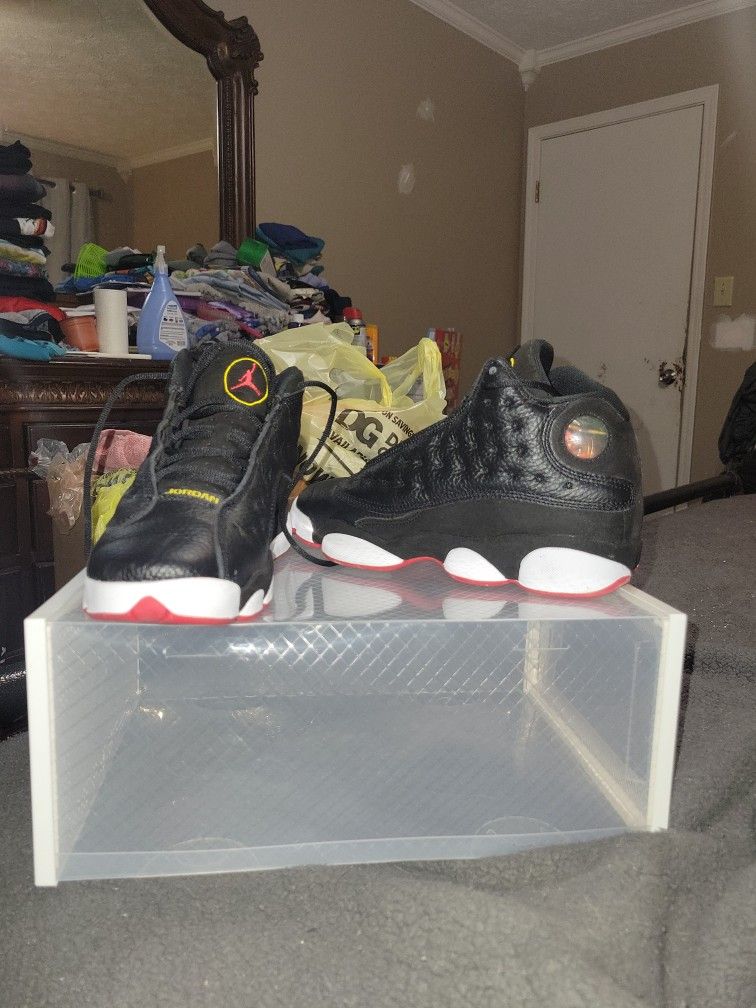 Nike Air Jordan 13 Retro "Playoffs" black, white, and red sneaker.