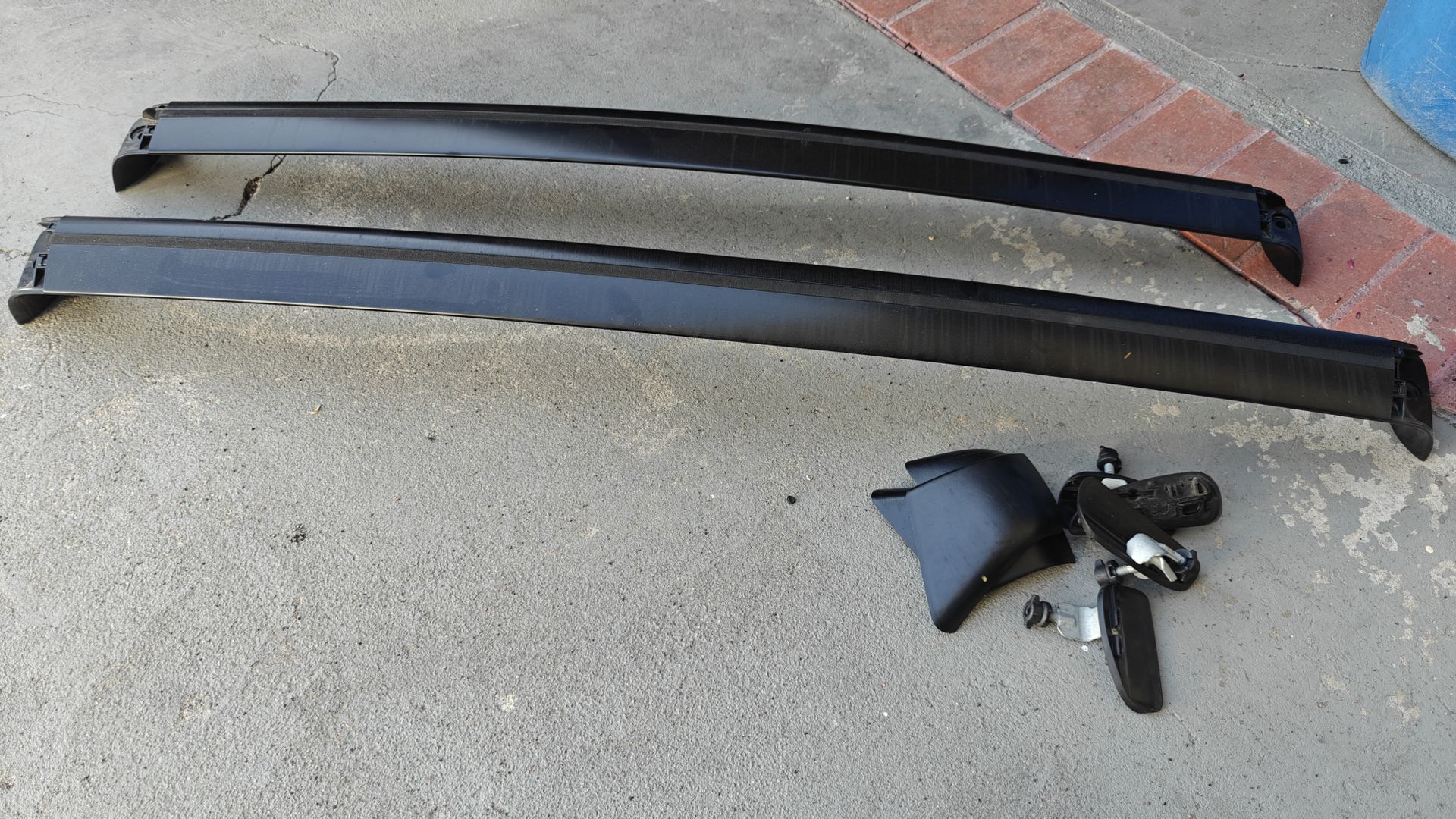in good condition model 3 roof rack all end caps and hardware included. years 2017-2026.