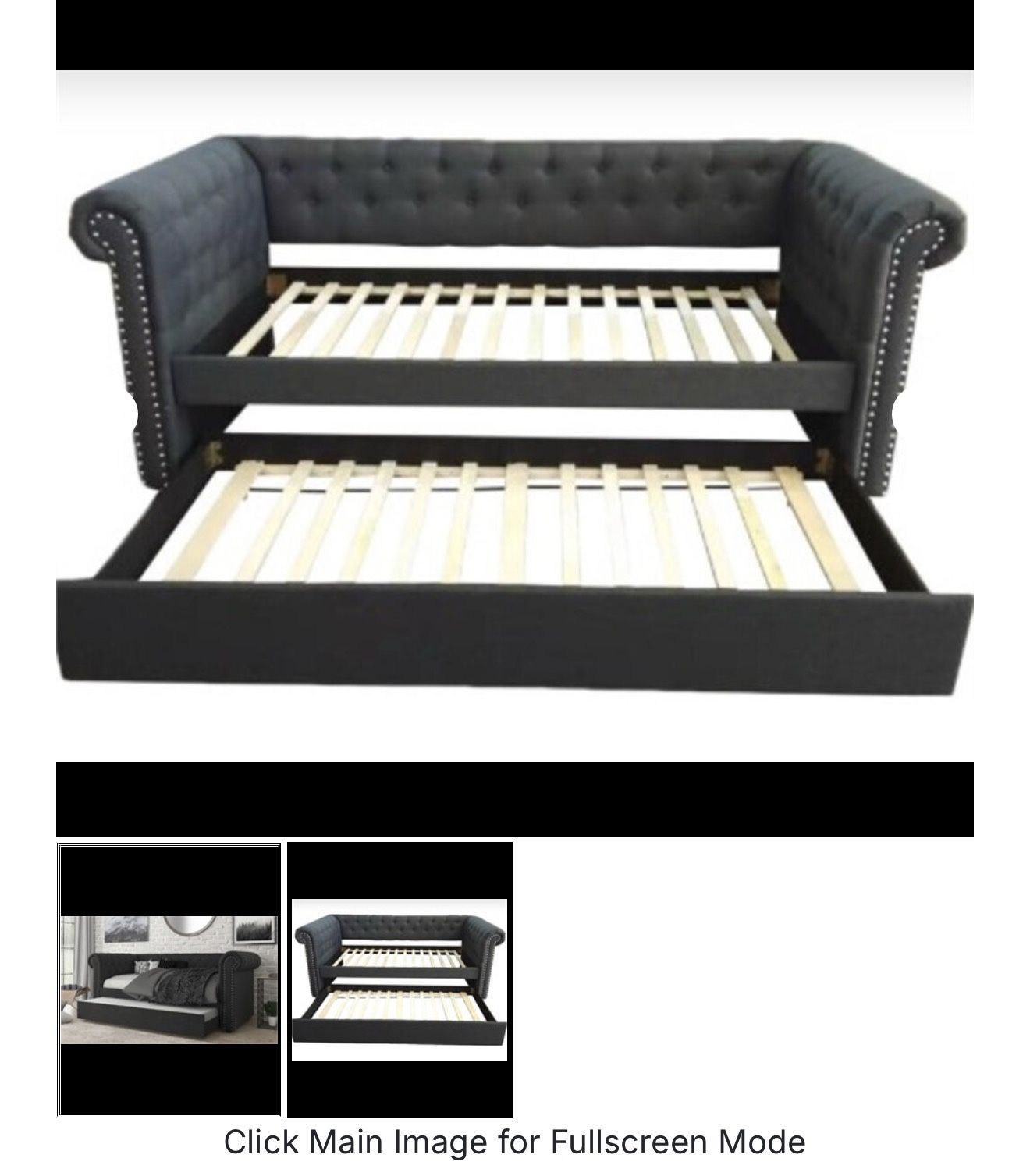 FOR SALE β Pull-Out Daybed / Sofa Bed (New) ποΈ Stylish upholstered daybed with pull-out trundle β¨ Modern design with nailhead trim and rolled arms β¨ Perfect for living room, guest room, or office Features: β’ Converts from sofa to bed β’ Pull-out trundle for extra sleeping space β’ Solid frame with slat support β’ Comfortable and space-saving design π¨ Color: Dark gray / charcoal π¦ Condition: New (never used / never assembled) π² Price: $200 π Pickup only