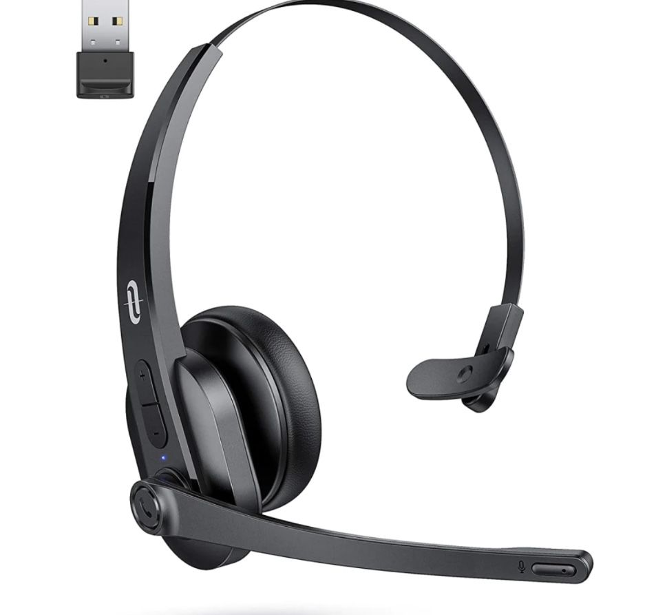 New still in box. Never been used. AI Noise Reduction: noise cancelling headset, slashing background noise up to 40dB, be heard clearly in noisy situations. Advanced QCC3020 Chipset: Bluetooth 5.0 headset with QCC3020 chipset for fast & stable signal transmission; freedom to pair with two Bluetooth devices simultaneously. 34 Hours Playtime: Wireless earphones provides up to 34 hours continuous talking on a single full charge, always ready to answer or make a hands-free calls. All Day Comfort: 2.8oz lightweight headset with adjustable headband fits any head shape; soft earpad & anti-slip pad stays securely in place for all-day comfort. Easy Control: Mute your voice with the mute button, redial/answer/reject/end/transfer calls with the multifunction button & adjust call volume with the “+” or “-” button. With USB Dongle Wireless Headset Bluetooth Widely Compatible : wireless bluetooth headset with USB adapter for PC, laptop, cell phones, computer, tablets, and other Bluetooth enabled devices. Also support laptops without Bluetooth function by USB dongle.