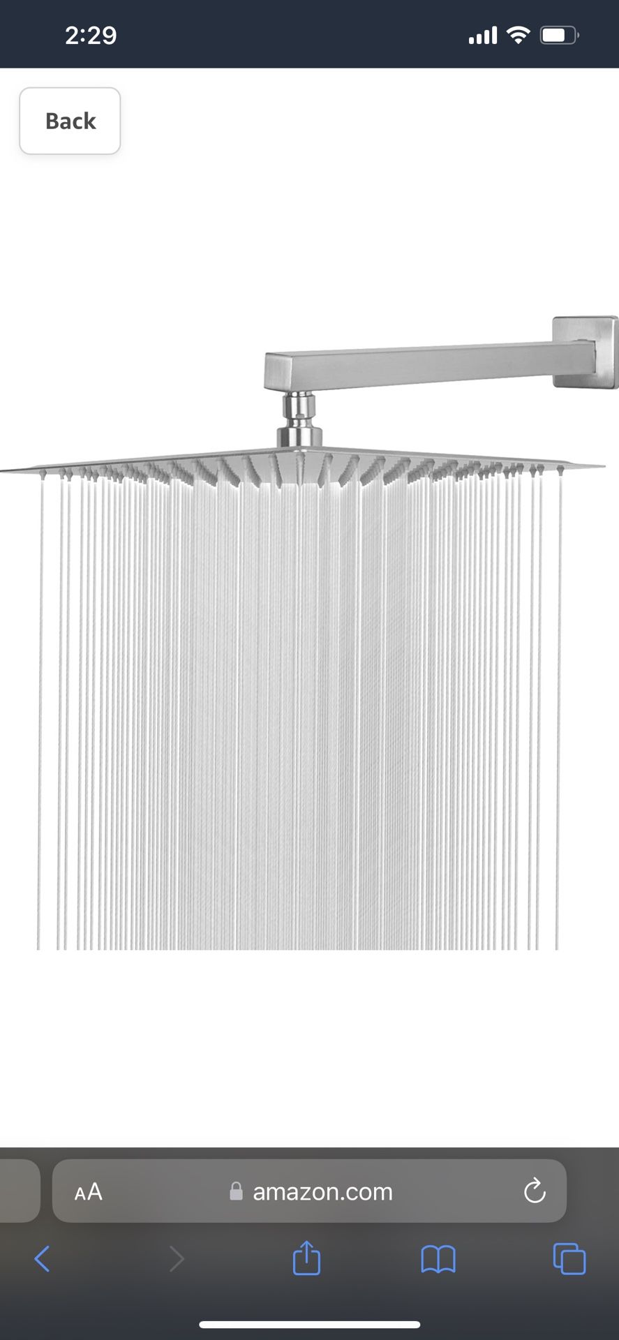 Shower Head with Extension Arm, High Pressure Square Shower Head with ShowerArm, Stainless Steel Rainfall Showerhead-Waterfall Full Body Coverage (12'' ShowerHead with 16'' Arm, Matte Black or brush nickel) Brand new in the box.