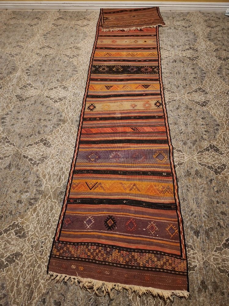 Vintage Kilim runner rug size 9.5 f x2 f.