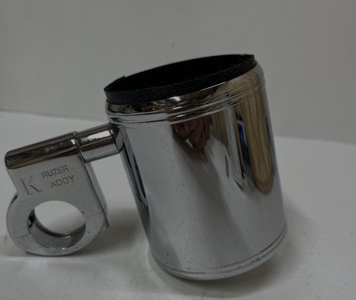 Brand NEW never installed all Chrome!! Need easy access to your beverage while riding? Now you can with the Kruzer Kaddy. Attaches simply, with all hardware and tools included in the box. Comes with multiple foam liners to accommodate up to a 20 ounce bottle. All metal stainless steel construction, triple plated chrome Attaches to any 7/8", 1", 1 1/4" bar Mounting stud allows for rigid positioning Cup comes with 2 insulated liners to accommodate many sizes of drink bottles and cups Easily detachable Only Acceptable offers NO lowball Offers pls!! Cup is 3 inches wide by 4 inches tall