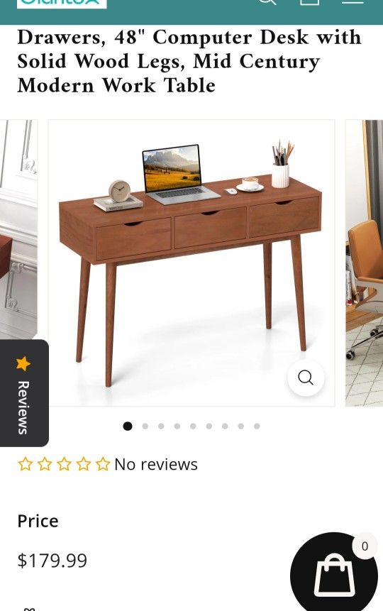 Writing Desk with 3 Drawers, 48" Computer Desk with Solid Wood Legs, Mid Century Modern Work Table / Desk  / Escritorio  /  Mesa