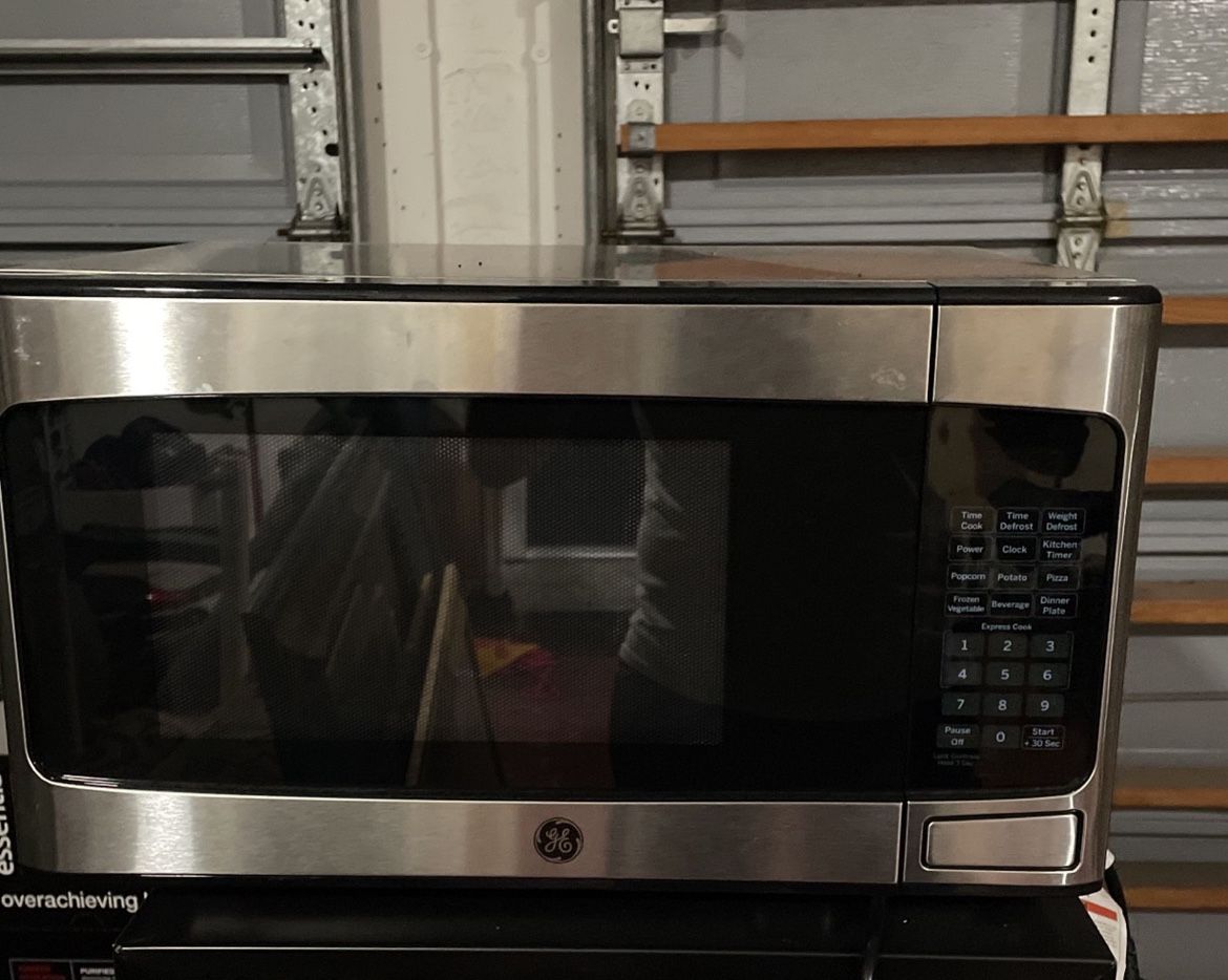 GE - 1.1 Cu. Ft. Mid-Size Microwave - Stainless Steel like new condition