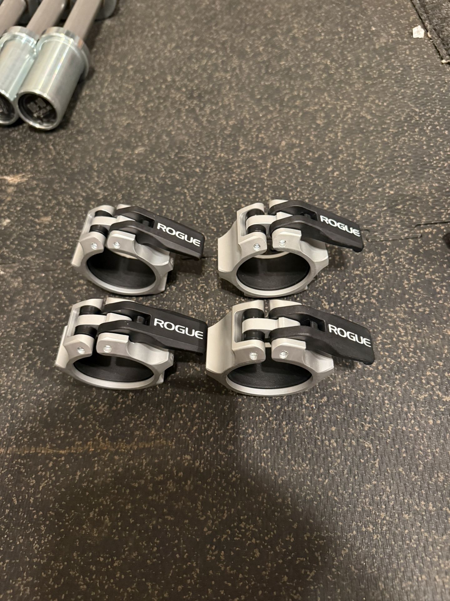 Rogue USA aluminum collars in like new condition. Price is PER PAIR. Feel free to message me if you have any questions. I have more workout stuff on my page. Located In lakeside Weights, gym, equipment, dumbbells, plate, plates, lifting, bench press, squat, heavy, iron, free, gone, asap, moving, rack, bench, barbell, exercise, squat, tree, garage, kettlebell, rogue, fitness, gym, pound