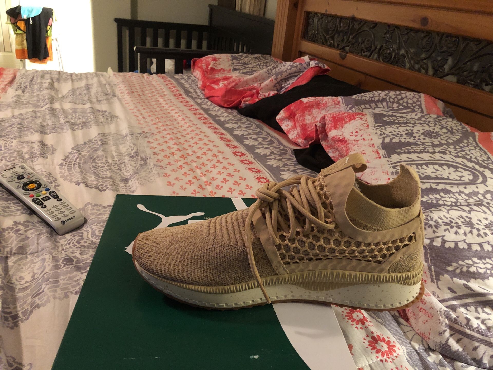 Puma net fit v2 evoknit,size 9 men’s 11 in woman brand new in the box never used.color pebble whisper white.80.00