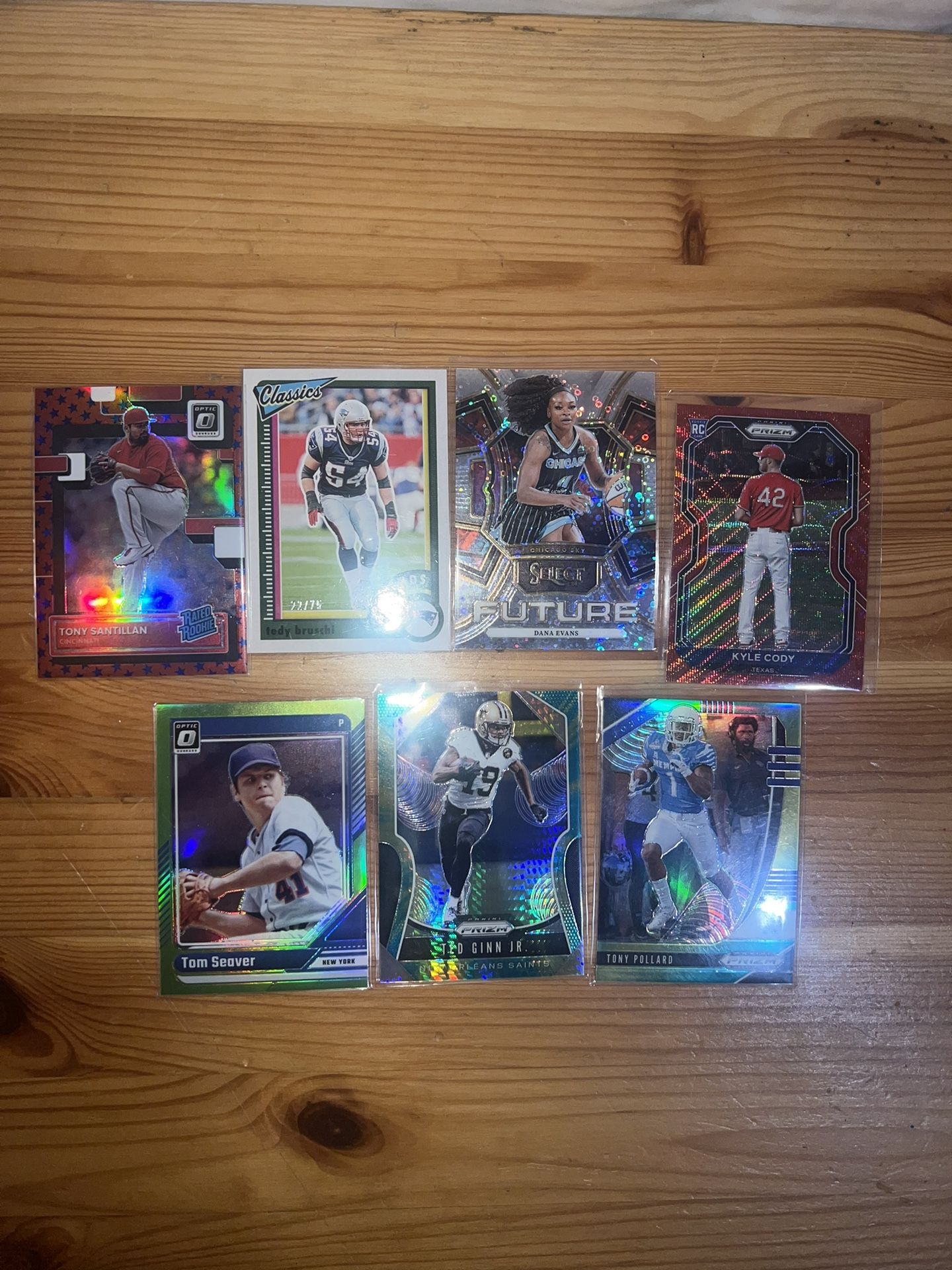 Baseball + Football + Basketball Cards Lot You Pick You Choose TONY SANTILLAN 2022 DONRUSS OPTIC RATED ROOKIE PRIZM PARALLEL /25 $5 Tedy Bruschi 2022 Panini Classics Legends /75 #140 Patriots $5 2024 Panini Select WNBA DANA EVANS #17 FUTURE WHITE DISCO PRIZM /75 $8 2021 Panini Prizm Tier II Red Donut Circle /99 Kyle Cody #115 Rookie RC $4 2024 Panini Donruss - Optic Orange Prizm #48 Tom Seaver /149 New York Mets $4 2019 Panini Prizm Prizms Hyper #184 Ted Ginn Jr. /175 $4 2020 Panini Prizm Draft Picks Green & Yellow Prizm /249 Tony Pollard #98 $5 Meet Up In Irving @dfwgoods