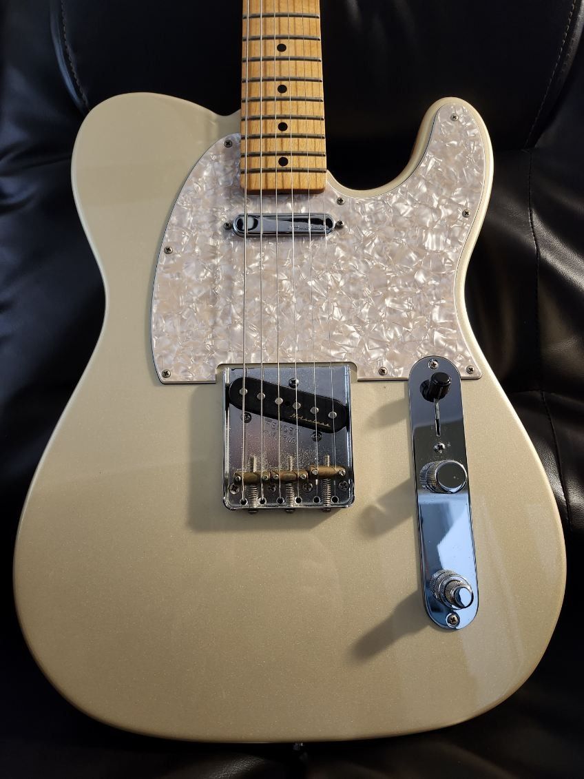 Fender Telecaster mid boost. Limited run, Blizzard pearl with nice flames in the maple neck. Comes with original tortoise shell pick guard and original Fender vintage noiseless pickups
