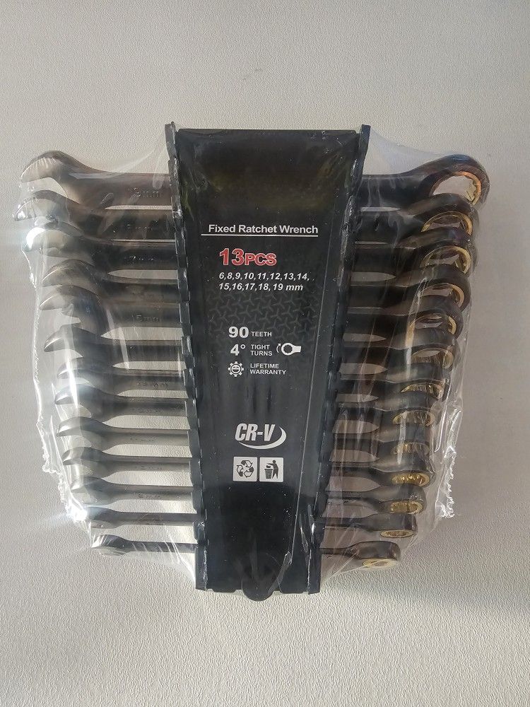 NEW HIGH QUALITY HEAVY DUTY 13pcs 90-Teeth Ratchet Wrenches Set, Fixed Head Metric Ratcheting Wrench Set 6, 8, 9, 10, 11, 12, 13, 14, 15, 16, 17, 18, 19MM, Cr-V Constructed, Nickel Plating with Organizer