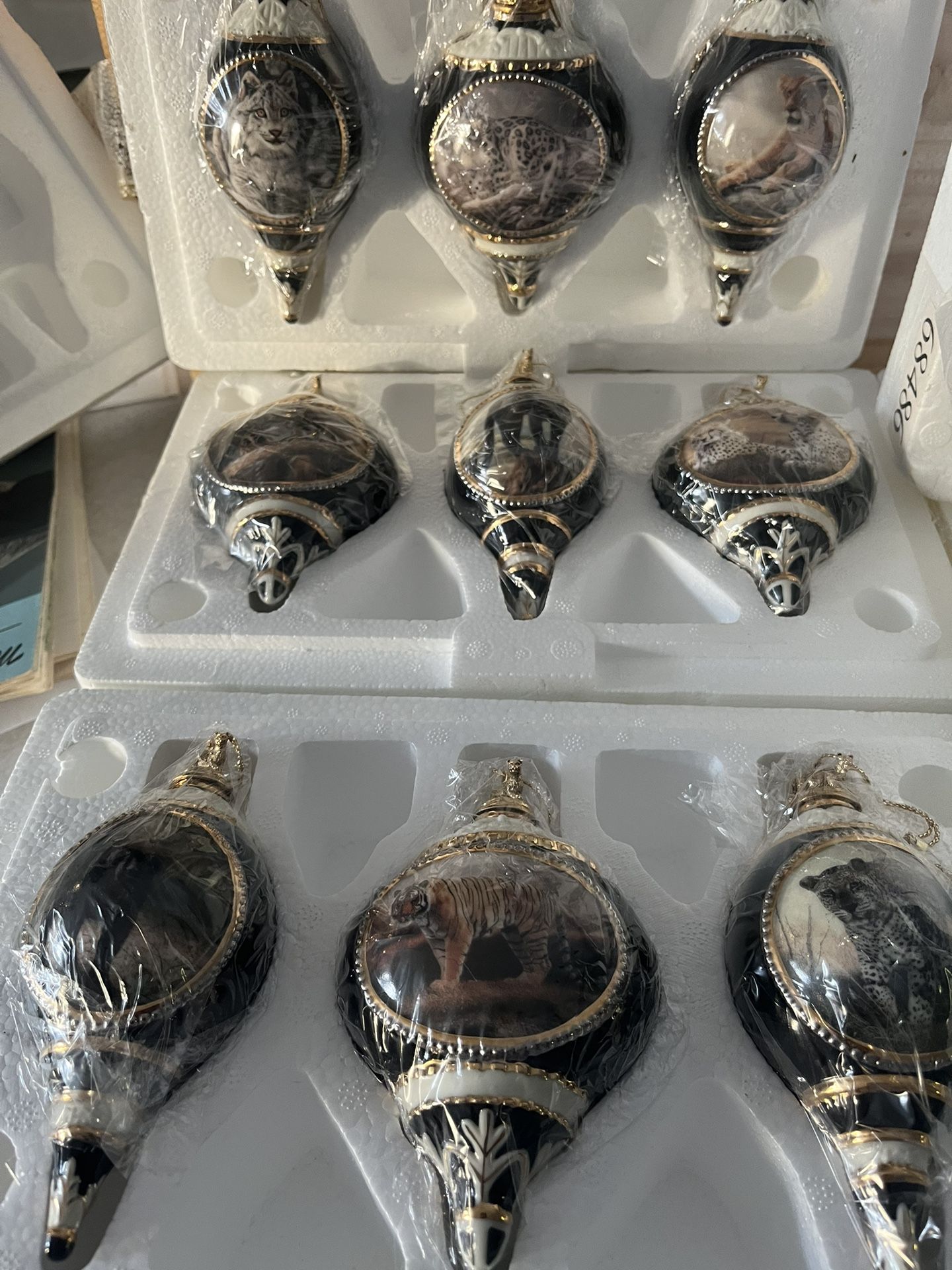 12 Charles France’s Majestic Cats Heirloom Porcelain Ornament Collection 2000 . New in Box 2nd , 3rd, 4th, and 6th issues with Certificate of Authenticity for all four issues. These were limited to 95 firing days.